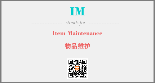 英文缩略词“IM”经常作为“Item Maintenance”的英文缩写来使用,中文表示:“物品维护”。本文将详细介绍英文缩写词IM所代表英文单词,其对应的中文拼音、详细解释以及在英语中的流行度。此外,还有关于缩略词IM的分类、应用领域及相关应用示例等。