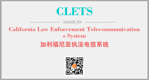 以上为California Law Enforcement Telecommunications System英文缩略词CLETS的中文解释,以及该英文缩写在英语的流行度、分类和应用领域方面的信息。