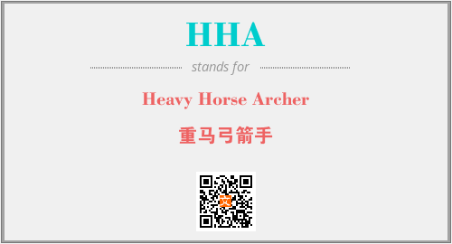 上述内容是“Heavy Horse Archer”作为“HHA”的缩写,解释为“重马弓箭手”时的信息,以及英文缩略词HHA所代表的英文单词,其对应的中文拼音、详细解释以及在英文中的流行度和相关分类、应用领域及应用示例等。