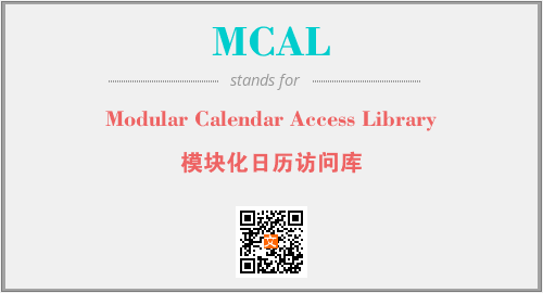 英文缩略词“MCAL”经常作为“Modular Calendar Access Library”的英文缩写来使用,中文表示:“模块化日历访问库”。本文将详细介绍英文缩写词MCAL所代表英文单词,其对应的中文拼音、详细解释以及在英语中的流行度。此外,还有关于缩略词MCAL的分类、应用领域及相关应用示例等。