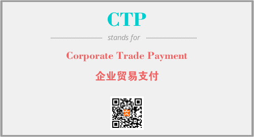 上述内容是“Corporate Trade Payment”作为“CTP”的缩写,解释为“企业贸易支付”时的信息,以及英文缩略词CTP所代表的英文单词,其对应的中文拼音、详细解释以及在英文中的流行度和相关分类、应用领域及应用示例等。