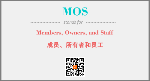 上述内容是“Members, Owners, and Staff”作为“MOS”的缩写,解释为“成员、所有者和员工”时的信息,以及英文缩略词MOS所代表的英文单词,其对应的中文拼音、详细解释以及在英文中的流行度和相关分类、应用领域及应用示例等。