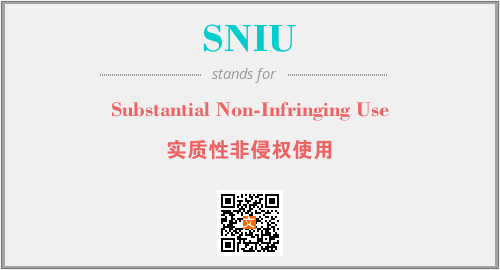 上述内容是“Substantial Non-Infringing Use”作为“SNIU”的缩写,解释为“实质性非侵权使用”时的信息,以及英文缩略词SNIU所代表的英文单词,其对应的中文拼音、详细解释以及在英文中的流行度和相关分类、应用领域及应用示例等。