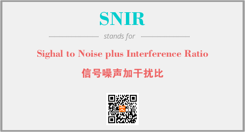 上述内容是“Sighal to Noise plus Interference Ratio”作为“SNIR”的缩写,解释为“信号噪声加干扰比”时的信息,以及英文缩略词SNIR所代表的英文单词,其对应的中文拼音、详细解释以及在英文中的流行度和相关分类、应用领域及应用示例等。