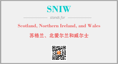 上述内容是“Scotland, Northern Ireland, and Wales”作为“SNIW”的缩写,解释为“苏格兰、北爱尔兰和威尔士”时的信息,以及英文缩略词SNIW所代表的英文单词,其对应的中文拼音、详细解释以及在英文中的流行度和相关分类、应用领域及应用示例等。