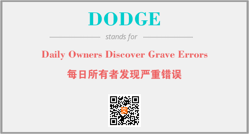上述内容是“Daily Owners Discover Grave Errors”作为“DODGE”的缩写,解释为“每日所有者发现严重错误”时的信息,以及英文缩略词DODGE所代表的英文单词,其对应的中文拼音、详细解释以及在英文中的流行度和相关分类、应用领域及应用示例等。