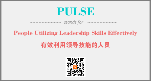 以上为People Utilizing Leadership Skills Effectively英文缩略词PULSE的中文解释,以及该英文缩写在英语的流行度、分类和应用领域方面的信息。