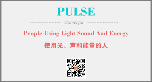 以上为People Using Light Sound And Energy英文缩略词PULSE的中文解释,以及该英文缩写在英语的流行度、分类和应用领域方面的信息。