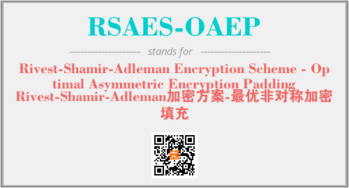 上述内容是“Rivest-Shamir-Adleman Encryption Scheme - Optimal Asymmetric Encryption Padding”作为“RSAES-OAEP”的缩写,解释为“Rivest-Shamir-Adleman加密方案-最优非对称加密填充”时的信息,以及英文缩略词RSAES-OAEP所代表的英文单词,其对应的中文拼音、详细解释以及在英文中的流行度和相关分类、应用领域及应用示例等。