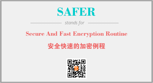 上述内容是“Secure And Fast Encryption Routine”作为“SAFER”的缩写,解释为“安全快速的加密例程”时的信息,以及英文缩略词SAFER所代表的英文单词,其对应的中文拼音、详细解释以及在英文中的流行度和相关分类、应用领域及应用示例等。