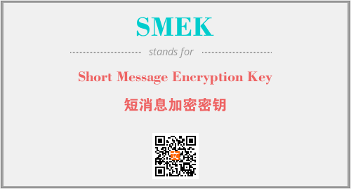 上述内容是“Short Message Encryption Key”作为“SMEK”的缩写,解释为“短消息加密密钥”时的信息,以及英文缩略词SMEK所代表的英文单词,其对应的中文拼音、详细解释以及在英文中的流行度和相关分类、应用领域及应用示例等。