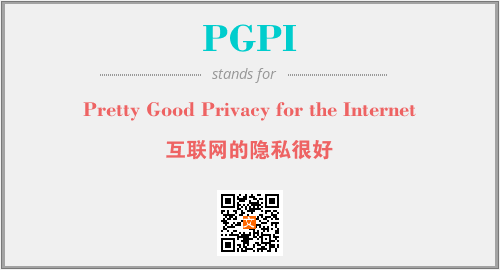 上述内容是“Pretty Good Privacy for the Internet”作为“PGPI”的缩写,解释为“互联网的隐私很好”时的信息,以及英文缩略词PGPI所代表的英文单词,其对应的中文拼音、详细解释以及在英文中的流行度和相关分类、应用领域及应用示例等。