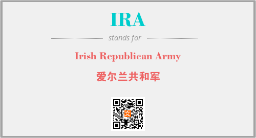 以上为Irish Republican Army英文缩略词IRA的中文解释,以及该英文缩写在英语的流行度、分类和应用领域方面的信息。