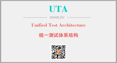 英文缩略词“UTA”经常作为“Unified Test Architecture”的英文缩写来使用,中文表示:“统一测试体系结构”。本文将详细介绍英文缩写词UTA所代表英文单词,其对应的中文拼音、详细解释以及在英语中的流行度。此外,还有关于缩略词UTA的分类、应用领域及相关应用示例等。