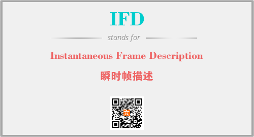 英文缩略词“IFD”经常作为“Instantaneous Frame Description”的英文缩写来使用,中文表示:“瞬时帧描述”。本文将详细介绍英文缩写词IFD所代表英文单词,其对应的中文拼音、详细解释以及在英语中的流行度。此外,还有关于缩略词IFD的分类、应用领域及相关应用示例等。