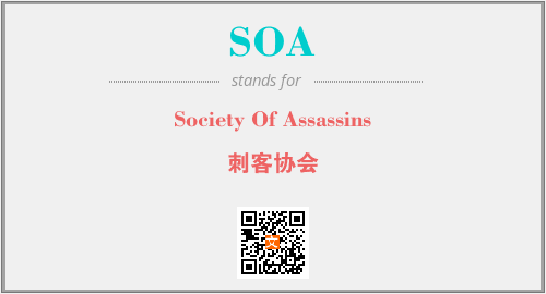 英文缩略词“SOA”经常作为“Society Of Assassins”的英文缩写来使用,中文表示:“刺客协会”。本文将详细介绍英文缩写词SOA所代表英文单词,其对应的中文拼音、详细解释以及在英语中的流行度。此外,还有关于缩略词SOA的分类、应用领域及相关应用示例等。