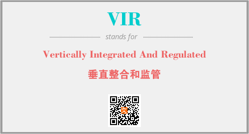 上述内容是“Vertically Integrated And Regulated”作为“VIR”的缩写,解释为“垂直整合和监管”时的信息,以及英文缩略词VIR所代表的英文单词,其对应的中文拼音、详细解释以及在英文中的流行度和相关分类、应用领域及应用示例等。