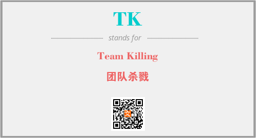 上述内容是“Team Killing”作为“TK”的缩写,解释为“团队杀戮”时的信息,以及英文缩略词TK所代表的英文单词,其对应的中文拼音、详细解释以及在英文中的流行度和相关分类、应用领域及应用示例等。
