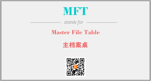 英文缩略词“MFT”经常作为“Master File Table”的英文缩写来使用,中文表示:“主档案桌”。本文将详细介绍英文缩写词MFT所代表英文单词,其对应的中文拼音、详细解释以及在英语中的流行度。此外,还有关于缩略词MFT的分类、应用领域及相关应用示例等。