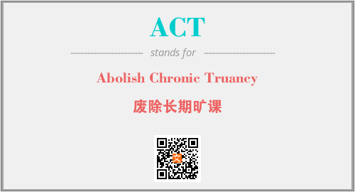 英文缩略词“ACT”经常作为“Abolish Chronic Truancy”的英文缩写来使用,中文表示:“废除长期旷课”。本文将详细介绍英文缩写词ACT所代表英文单词,其对应的中文拼音、详细解释以及在英语中的流行度。此外,还有关于缩略词ACT的分类、应用领域及相关应用示例等。