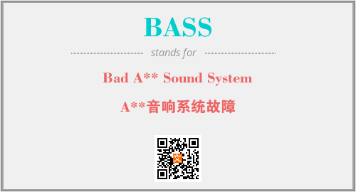 英文缩略词“BASS”经常作为“Bad A** Sound System”的英文缩写来使用,中文表示:“A**音响系统故障”。本文将详细介绍英文缩写词BASS所代表英文单词,其对应的中文拼音、详细解释以及在英语中的流行度。此外,还有关于缩略词BASS的分类、应用领域及相关应用示例等。