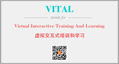 上述内容是“Virtual Interactive Training And Learning”作为“VITAL”的缩写,解释为“虚拟交互式培训和学习”时的信息,以及英文缩略词VITAL所代表的英文单词,其对应的中文拼音、详细解释以及在英文中的流行度和相关分类、应用领域及应用示例等。