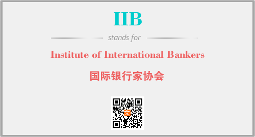 英文缩略词“IIB”经常作为“Institute of International Bankers”的英文缩写来使用,中文表示:“国际银行家协会”。本文将详细介绍英文缩写词IIB所代表英文单词,其对应的中文拼音、详细解释以及在英语中的流行度。此外,还有关于缩略词IIB的分类、应用领域及相关应用示例等。