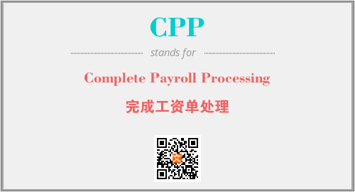 英文缩略词“CPP”经常作为“Complete Payroll Processing”的英文缩写来使用,中文表示:“完成工资单处理”。本文将详细介绍英文缩写词CPP所代表英文单词,其对应的中文拼音、详细解释以及在英语中的流行度。此外,还有关于缩略词CPP的分类、应用领域及相关应用示例等。