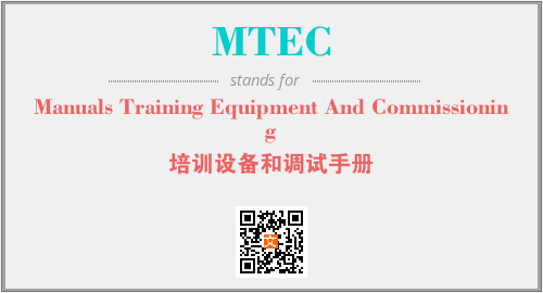 上述内容是“Manuals Training Equipment And Commissioning”作为“MTEC”的缩写,解释为“培训设备和调试手册”时的信息,以及英文缩略词MTEC所代表的英文单词,其对应的中文拼音、详细解释以及在英文中的流行度和相关分类、应用领域及应用示例等。