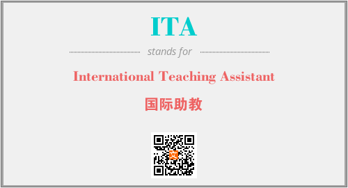 英文缩略词“ITA”经常作为“International Teaching Assistant”的英文缩写来使用,中文表示:“国际助教”。本文将详细介绍英文缩写词ITA所代表英文单词,其对应的中文拼音、详细解释以及在英语中的流行度。此外,还有关于缩略词ITA的分类、应用领域及相关应用示例等。