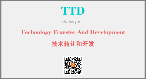 上述内容是“Technology Transfer And Development”作为“TTD”的缩写,解释为“技术转让和开发”时的信息,以及英文缩略词TTD所代表的英文单词,其对应的中文拼音、详细解释以及在英文中的流行度和相关分类、应用领域及应用示例等。