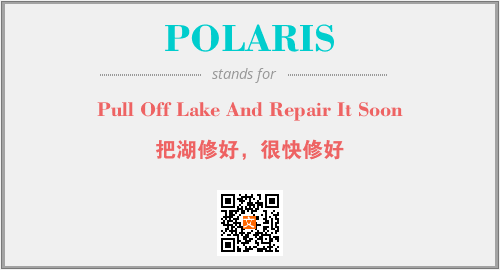 上述内容是“Pull Off Lake And Repair It Soon”作为“POLARIS”的缩写,解释为“把湖修好,很快修好”时的信息,以及英文缩略词POLARIS所代表的英文单词,其对应的中文拼音、详细解释以及在英文中的流行度和相关分类、应用领域及应用示例等。