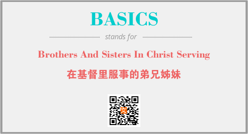 上述内容是“Brothers And Sisters In Christ Serving”作为“BASICS”的缩写,解释为“在基督里服事的弟兄姊妹”时的信息,以及英文缩略词BASICS所代表的英文单词,其对应的中文拼音、详细解释以及在英文中的流行度和相关分类、应用领域及应用示例等。