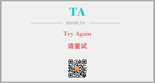 上述内容是“Try Again”作为“TA”的缩写,解释为“请重试”时的信息,以及英文缩略词TA所代表的英文单词,其对应的中文拼音、详细解释以及在英文中的流行度和相关分类、应用领域及应用示例等。