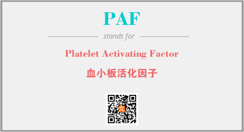 上述内容是“Platelet Activating Factor”作为“PAF”的缩写,解释为“血小板活化因子”时的信息,以及英文缩略词PAF所代表的英文单词,其对应的中文拼音、详细解释以及在英文中的流行度和相关分类、应用领域及应用示例等。