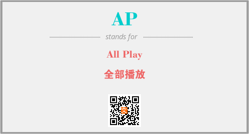 英文缩略词“AP”经常作为“All Play”的英文缩写来使用,中文表示:“全部播放”。本文将详细介绍英文缩写词AP所代表英文单词,其对应的中文拼音、详细解释以及在英语中的流行度。此外,还有关于缩略词AP的分类、应用领域及相关应用示例等。