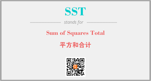 英文缩略词“SST”经常作为“Sum of Squares Total”的英文缩写来使用,中文表示:“平方和合计”。本文将详细介绍英文缩写词SST所代表英文单词,其对应的中文拼音、详细解释以及在英语中的流行度。此外,还有关于缩略词SST的分类、应用领域及相关应用示例等。