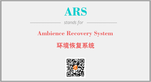 上述内容是“Ambience Recovery System”作为“ARS”的缩写,解释为“环境恢复系统”时的信息,以及英文缩略词ARS所代表的英文单词,其对应的中文拼音、详细解释以及在英文中的流行度和相关分类、应用领域及应用示例等。