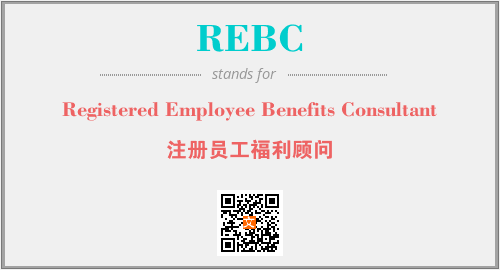 英文缩略词“REBC”经常作为“Registered Employee Benefits Consultant”的英文缩写来使用,中文表示:“注册员工福利顾问”。本文将详细介绍英文缩写词REBC所代表英文单词,其对应的中文拼音、详细解释以及在英语中的流行度。此外,还有关于缩略词REBC的分类、应用领域及相关应用示例等。