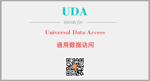 英文缩略词“UDA”经常作为“Universal Data Access”的英文缩写来使用,中文表示:“通用数据访问”。本文将详细介绍英文缩写词UDA所代表英文单词,其对应的中文拼音、详细解释以及在英语中的流行度。此外,还有关于缩略词UDA的分类、应用领域及相关应用示例等。