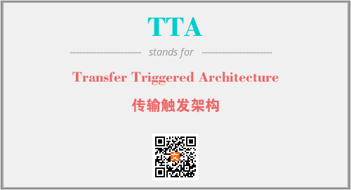 英文缩略词“TTA”经常作为“Transfer Triggered Architecture”的英文缩写来使用,中文表示:“传输触发架构”。本文将详细介绍英文缩写词TTA所代表英文单词,其对应的中文拼音、详细解释以及在英语中的流行度。此外,还有关于缩略词TTA的分类、应用领域及相关应用示例等。