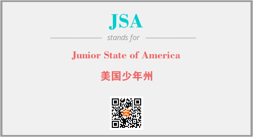 上述内容是“Junior State of America”作为“JSA”的缩写,解释为“美国少年州”时的信息,以及英文缩略词JSA所代表的英文单词,其对应的中文拼音、详细解释以及在英文中的流行度和相关分类、应用领域及应用示例等。