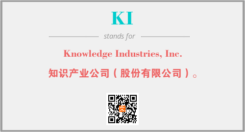 上述内容是“Knowledge Industries, Inc.”作为“KI”的缩写,解释为“知识产业公司(股份有限公司)。”时的信息,以及英文缩略词KI所代表的英文单词,其对应的中文拼音、详细解释以及在英文中的流行度和相关分类、应用领域及应用示例等。