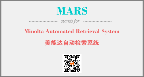 上述内容是“Minolta Automated Retrieval System”作为“MARS”的缩写,解释为“美能达自动检索系统”时的信息,以及英文缩略词MARS所代表的英文单词,其对应的中文拼音、详细解释以及在英文中的流行度和相关分类、应用领域及应用示例等。