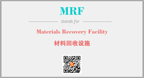 上述内容是“Materials Recovery Facility”作为“MRF”的缩写,解释为“材料回收设施”时的信息,以及英文缩略词MRF所代表的英文单词,其对应的中文拼音、详细解释以及在英文中的流行度和相关分类、应用领域及应用示例等。
