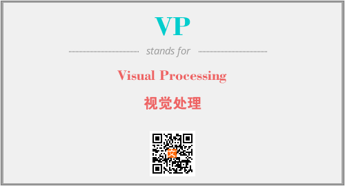 英文缩略词“VP”经常作为“Visual Processing”的英文缩写来使用,中文表示:“视觉处理”。本文将详细介绍英文缩写词VP所代表英文单词,其对应的中文拼音、详细解释以及在英语中的流行度。此外,还有关于缩略词VP的分类、应用领域及相关应用示例等。