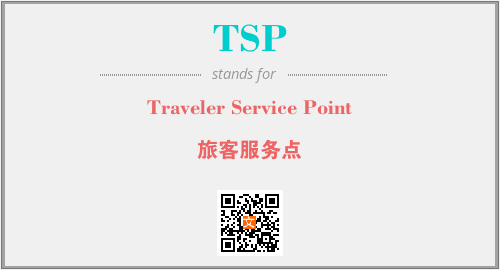 上述内容是“Traveler Service Point”作为“TSP”的缩写,解释为“旅客服务点”时的信息,以及英文缩略词TSP所代表的英文单词,其对应的中文拼音、详细解释以及在英文中的流行度和相关分类、应用领域及应用示例等。