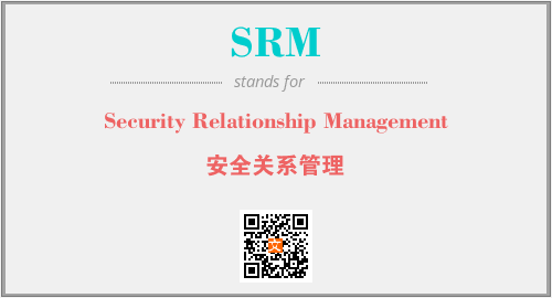 英文缩略词“SRM”经常作为“Security Relationship Management”的英文缩写来使用,中文表示:“安全关系管理”。本文将详细介绍英文缩写词SRM所代表英文单词,其对应的中文拼音、详细解释以及在英语中的流行度。此外,还有关于缩略词SRM的分类、应用领域及相关应用示例等。