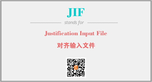 上述内容是“Justification Input File”作为“JIF”的缩写,解释为“对齐输入文件”时的信息,以及英文缩略词JIF所代表的英文单词,其对应的中文拼音、详细解释以及在英文中的流行度和相关分类、应用领域及应用示例等。