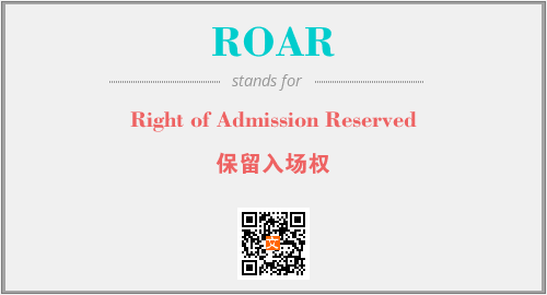 上述内容是“Right of Admission Reserved”作为“ROAR”的缩写,解释为“保留入场权”时的信息,以及英文缩略词ROAR所代表的英文单词,其对应的中文拼音、详细解释以及在英文中的流行度和相关分类、应用领域及应用示例等。